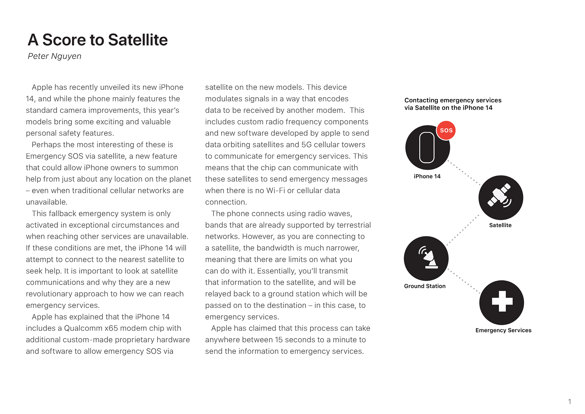 This communication design project was created to clearly present the new SOS feature on the iPhone 14 in a simple and accessible way. Using engaging and easy-to-read infographics, the design breaks down how the feature works and provides a clear, step-by-step guide for activating it during emergencies. The visuals are designed to be intuitive and reassuring, helping users quickly understand the process and feel confident using the feature when it matters most. This project highlights the iPhone 14’s focus on safety, clarity, and user-friendly design.