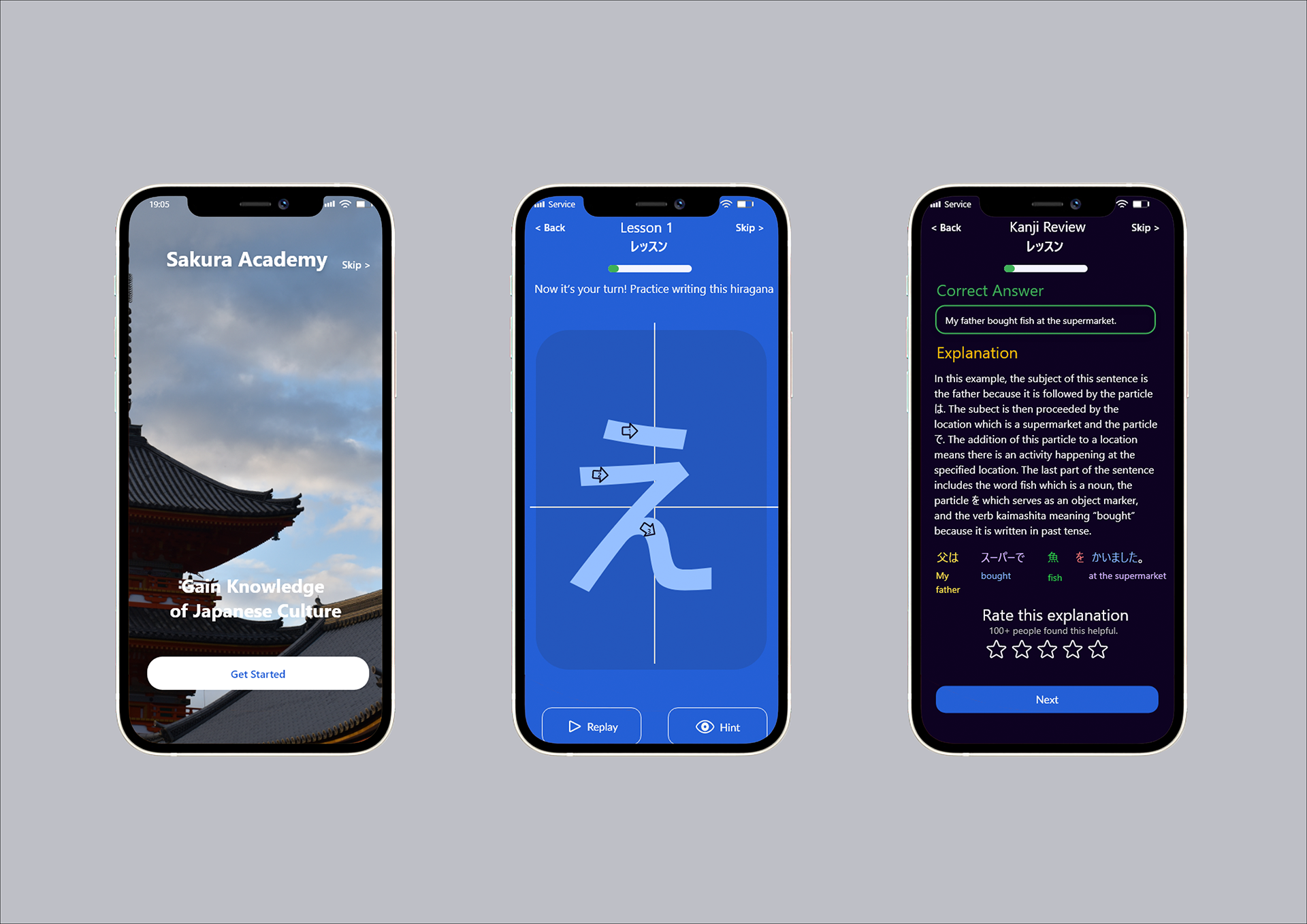Sakura Academy is an educational app designed for Japanese learners, offering intuitive character-tracing exercises paired with real-time feedback to strengthen understanding. Interactive quizzes and clear explanations of errors help users grasp both the correct answers and the reasoning behind them. With built-in progress tracking and adaptive learning speeds, the app provides a flexible, personalised learning experience that fits seamlessly into any schedule.